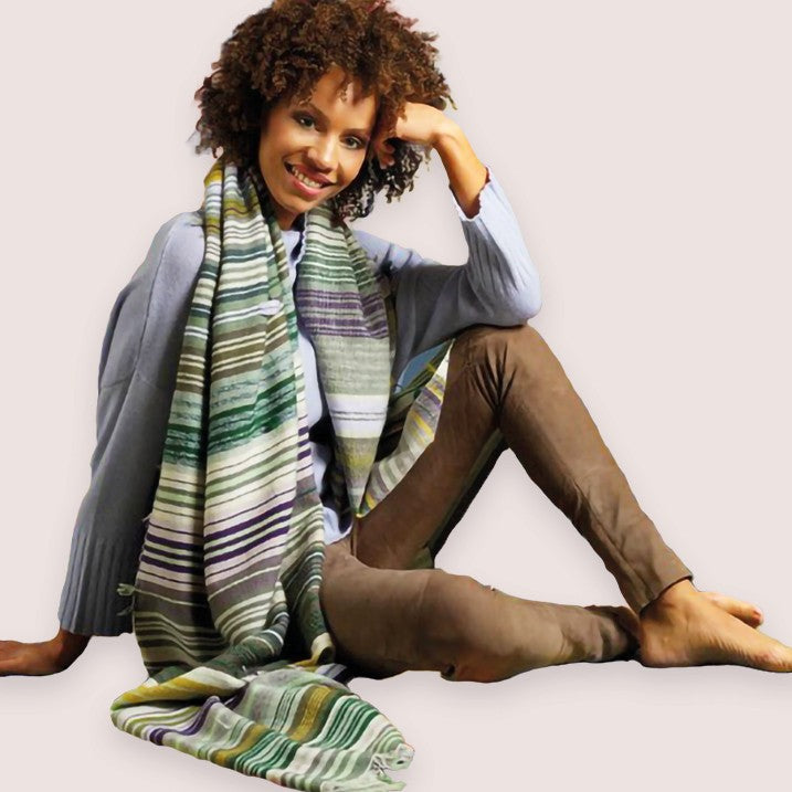 Handgesponnenes, naturbelassenes Garn, handgewoben in wunderschönen Olivtönen